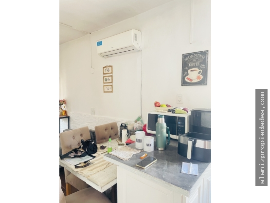 Cuenta con cocina comedor, dos dormitorios, sala de juegos o living, baño, galería, garage cubierto, fondo libre y jardín al frente.